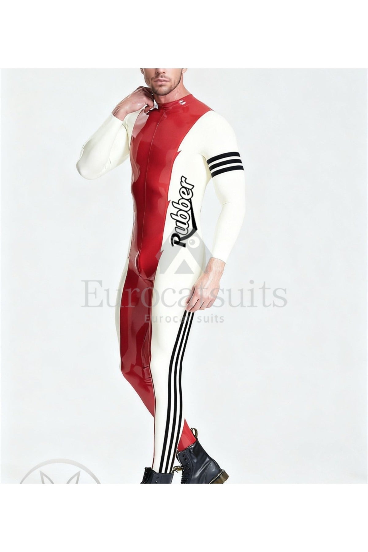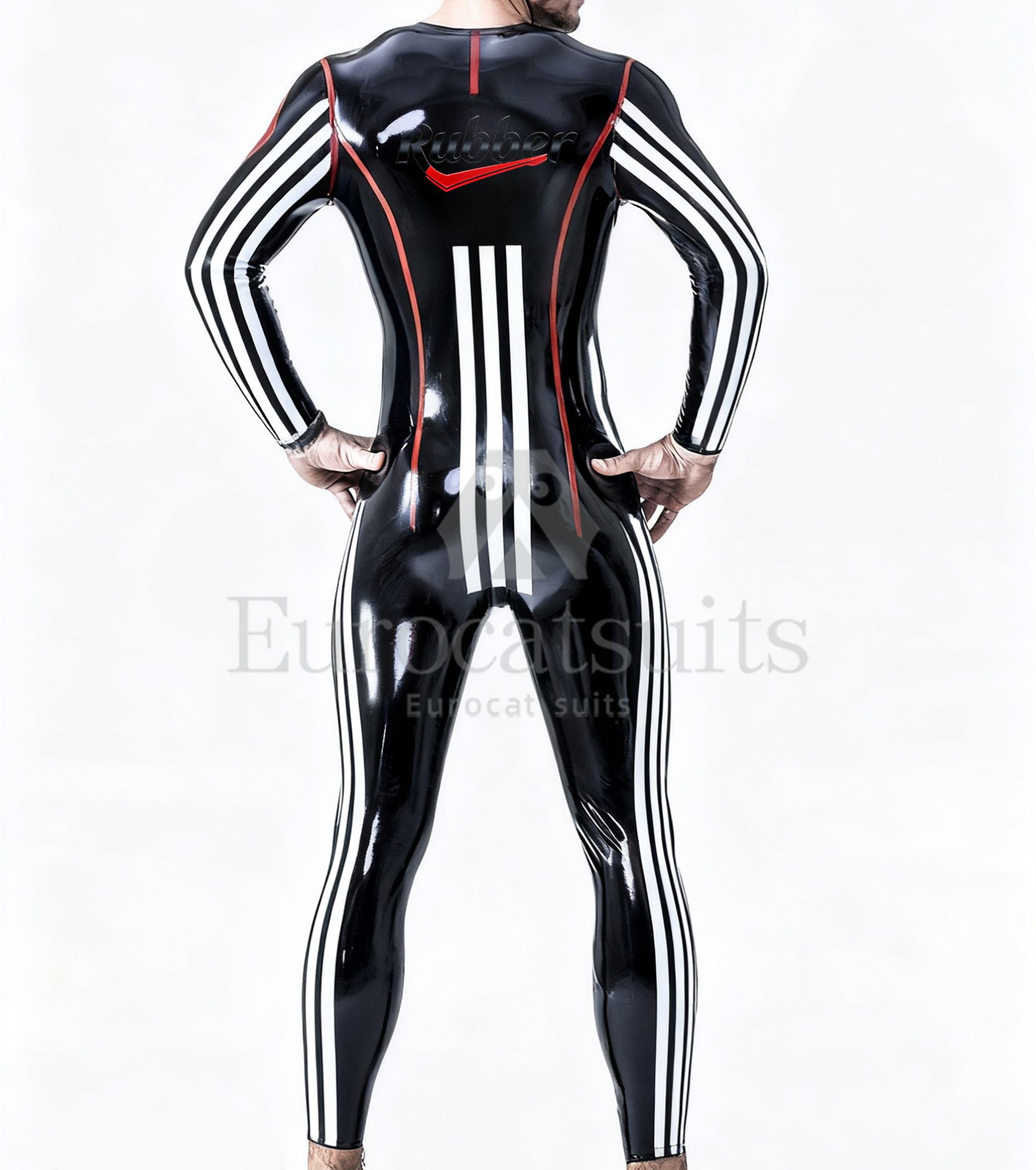 customized latex catsuit eurocat men`s black red latex bodysuit short sleeves front zipper bodycon suit costume bodysuit cosplay clubwear