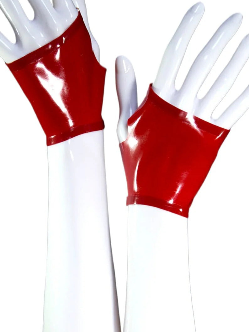 Cow Print Latex Gauntlets Applique Embellished Gloves