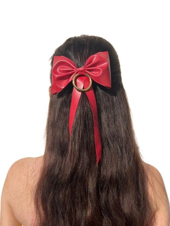 Latex O-ring Hair Bow, Hair Clip, Hair Slide with Handmade Bow. Custom Made