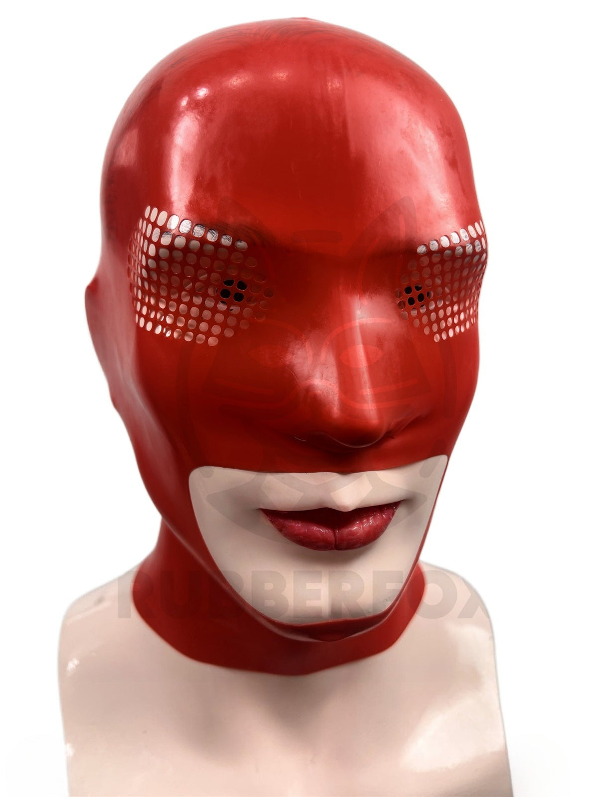 Latexmaske aus rotem Gummi mit offenem Mund