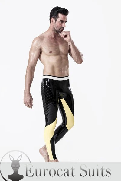 Gepolsterte Latex-Leggings für Männer mit Reißverschluss an den Oberschenkeln