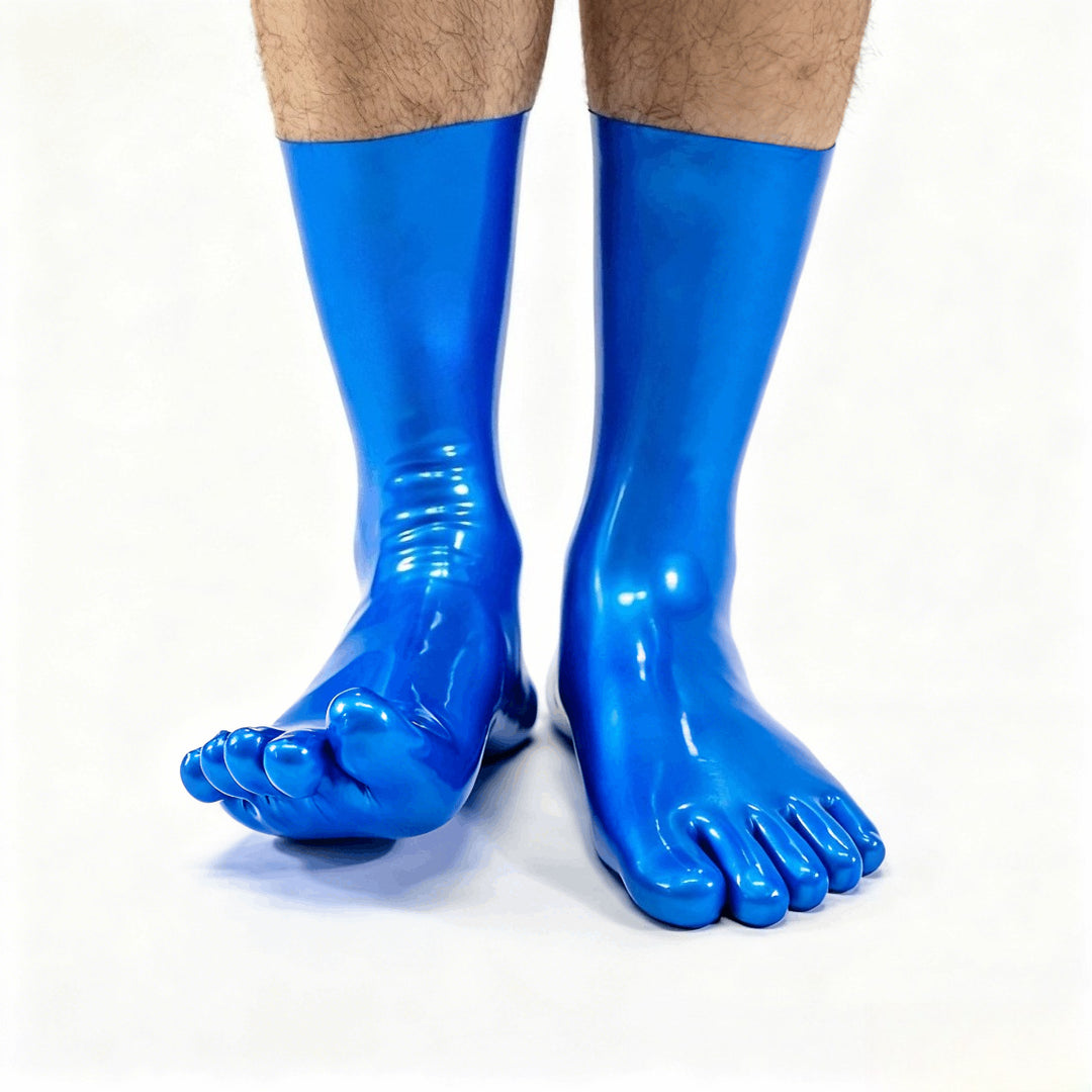 Short latex metal blue five toe socks
