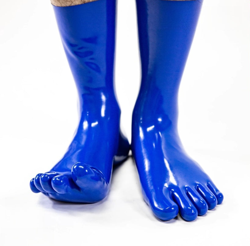 Short latex royal blue five toe socks